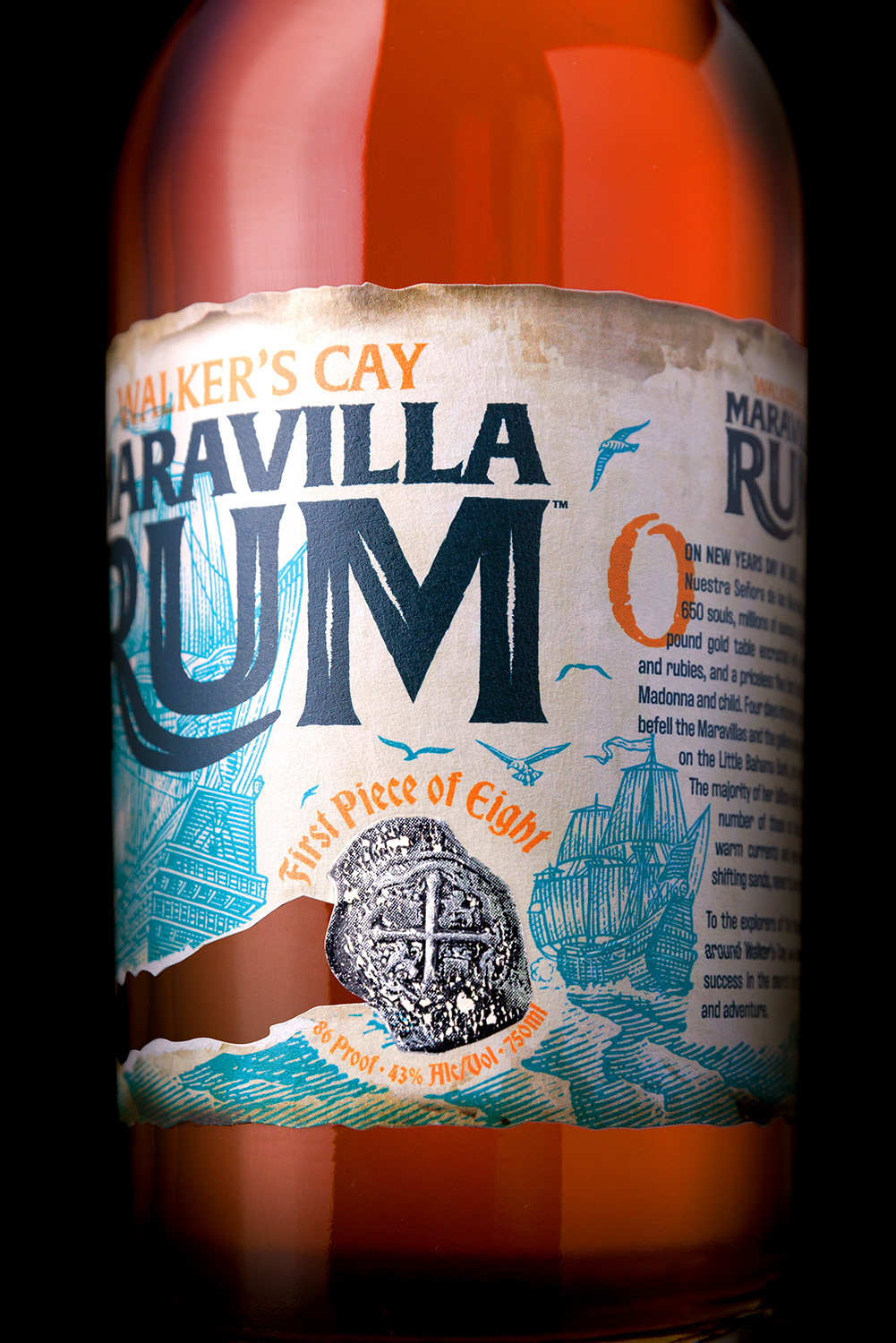 Maravilla Rum Packaging Label Illustrated by Steven Noble